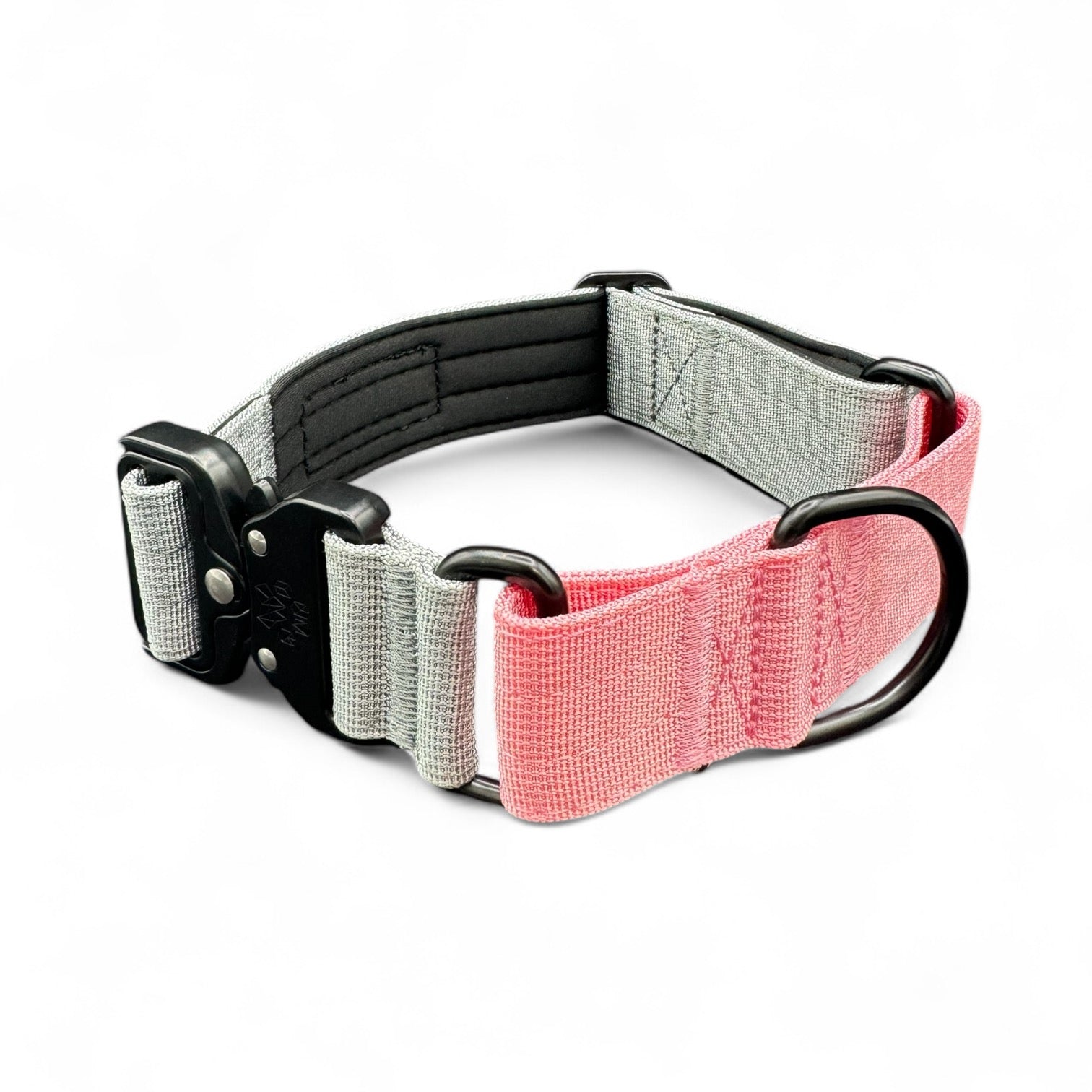 Add a touch of subtle elegance to your dog’s wardrobe with this refined gray and pink martingale collar. The soft color combination offers a sleek yet stylish look, making it perfect for dogs with a chic sense of style. Designed for comfort and control, the martingale collar provides a safe, gentle fit while giving you the confidence to handle your dog on walks.
